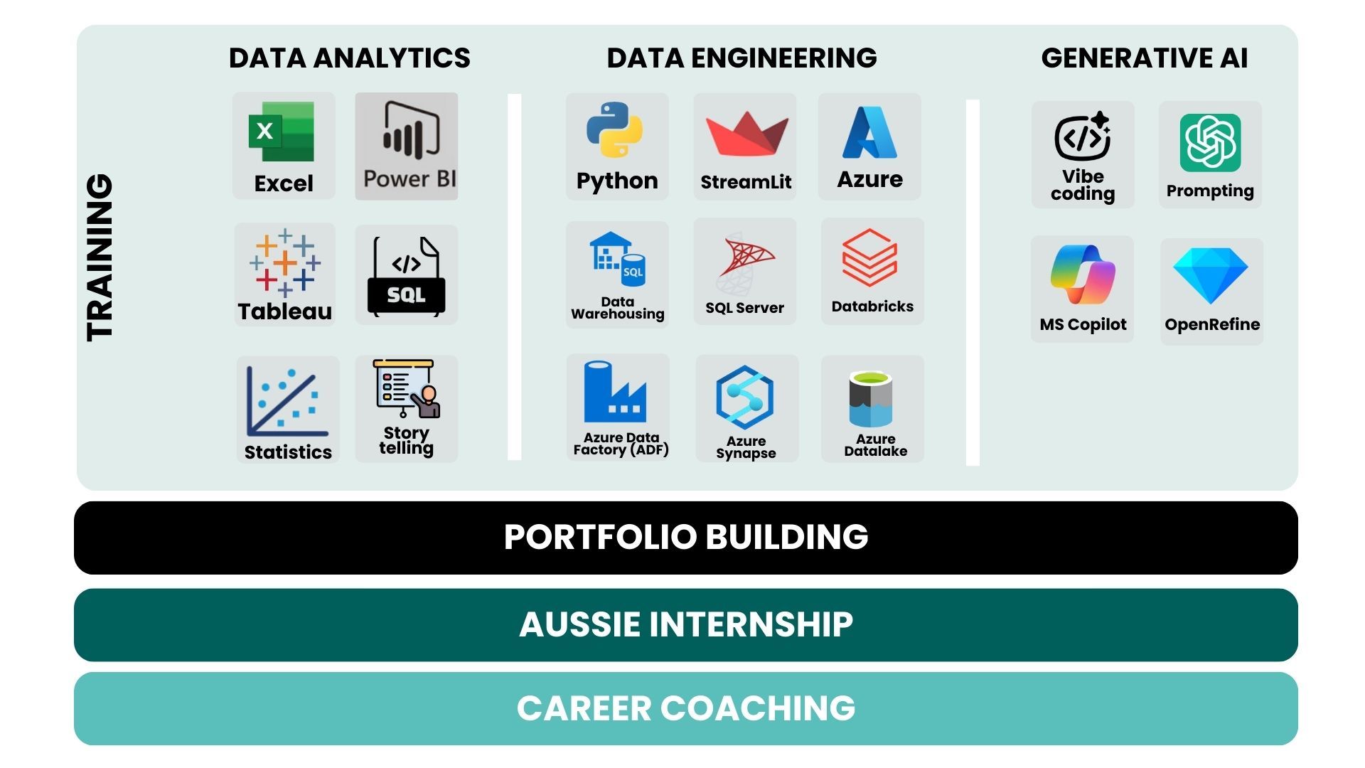 Train and upskill on core technical skills (Excel, Database Querying – SQL, Data Visualization, Tableau, Power BI, Python and Basic Statistics)