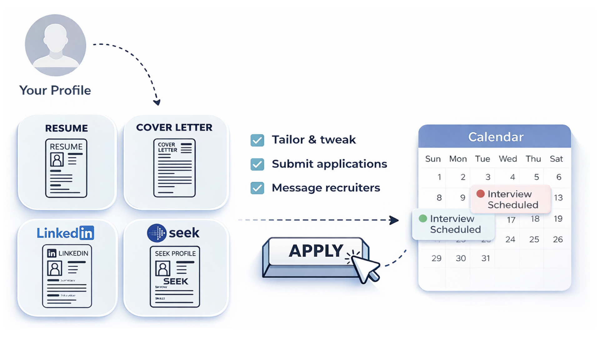 We don’t just apply; we ensure you look the part. We optimise your resume and LinkedIn for maximum searchability.